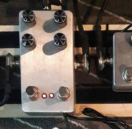 Made as a dual distortion pedal, each side employs an Electra style circuit with an added gain control. Due to spatial constraints and the intricate nature of PTP wiring, the inclusion of a tone control was deemed impractical. Its aesthetic reflects a minimalist approach, featuring a bare aluminum chassis with metal barrel-style knobs, devoid of embellishments or graphics. Despite its modest appearance, the outcome turned out not so bad. Sonically, while it didn't align precisely with my personal preferences, it held its own. This pedal found a new home in 2016, marking my first sale in the industry of pedal building, priced at MYR200.